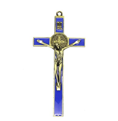 Křesťanský kříž na stěnu o délce 20 cm vyrobený z průhledného litého akrylátu s potiskem. Součástí kříže je řetízek pro zavěšení na stěnu.