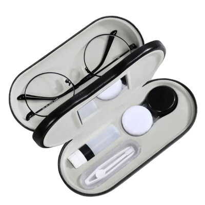 Pevné pouzdro na brýle s povrchem ze syntetické kůže. Vnitřek pouzdra je polstrován.